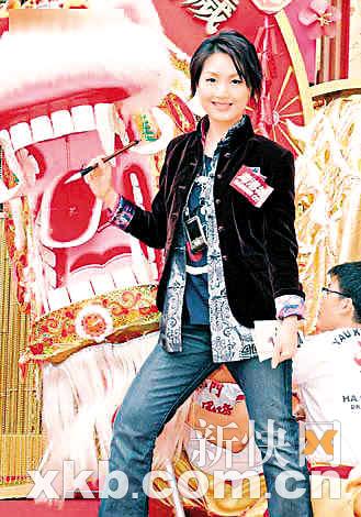 千女華前日為“海港城金龍醒獅賀新歲”任嘉賓,她乘坐插有“楊”字大旗的八人大金轎進(jìn)場(chǎng),并即席表演舞獅,更逐一向圍觀的市民派大利市。