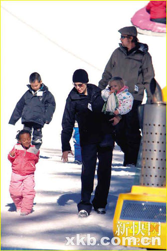 組圖:皮特朱莉滑雪地度周末 一家大小其樂融融
