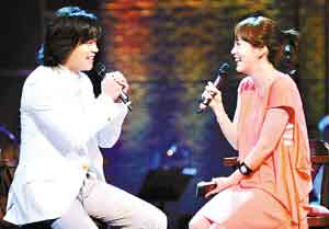 韓國人氣女星金正恩轉型當起音樂節(jié)目主持人,將通過音樂訪談節(jié)目《金正恩的巧克力》正式開始主持人生涯,之前在記者會上就有不少記者關心其男友李瑞鎮(zhèn)是否會以嘉賓身份出現(xiàn),果然日前錄影第一集時李瑞鎮(zhèn)身穿白色西裝出現(xiàn)在錄制現(xiàn)場,還表白說金正恩就是自己的巧克力,二人深情凝望的眼神讓臺下觀眾羨慕不已。