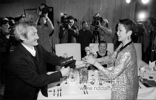 當(dāng)天,現(xiàn)場三位女主角齊齊將收到的金玫瑰送給徐克。徐克卻忽然走下舞臺(tái),穿過前面的數(shù)十位記者,走向坐在臺(tái)下觀眾席上的施南生身邊,連同自己手上的金玫瑰,向施南生獻(xiàn)上了4朵金玫瑰,而且當(dāng)眾深情地對施南生說“金玫瑰當(dāng)然要給最好的女人,你永遠(yuǎn)是最好的女人。”這番話顯然讓施南生頗為感動(dòng)和驚喜,她捧著金玫瑰,不由眼泛淚花。