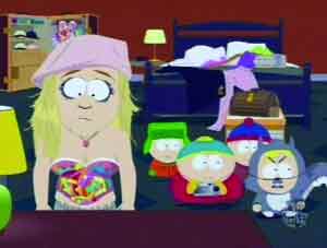 3月20日,動畫片《南方公園》中的布蘭妮,先是因為受不了狗仔的圍堵而吞槍自殺,之后沒了半個頭的她還以去年參加MTV頒獎禮時的造型現(xiàn)身演出。