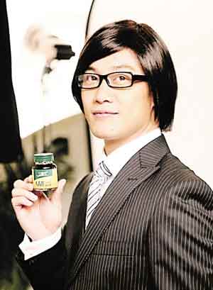 陳奕迅早前以百變補習(xí)老師的造型為代言的雞精拍攝新廣告,其中一款造型是頭戴四六分界的長假發(fā),穿上黑色西裝、戴黑框眼鏡,維肖維妙,引人發(fā)笑。他說:“要好成績不一定要靠補習(xí)天王,最重要是精神抖擻!