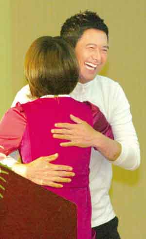而女記者之后,有位男記者問到周潤發(fā)對男主角和自己的愛如何理解時,故意誤解了問題的他稱:“我對男主角的愛?對!是有愛,是友情的愛!”接著他又說:“就像我對你,我也挺愛你的。”這番話又一次引來爆笑。