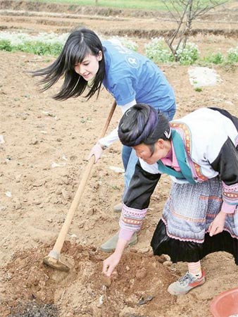 中新網(wǎng)4月8日電 周慧敏(Vivian)早前以“樂施會(huì)中國(guó)發(fā)展基金”樂施大使身分,到云南祿勸縣農(nóng)村展開首個(gè)內(nèi)地扶貧之旅,探訪當(dāng)?shù)卮迕窦绑w驗(yàn)他們的生活情況,一起吃農(nóng)家飯、學(xué)習(xí)蠟染及繡花、耕種等。周慧敏希望將來有機(jī)會(huì)與男友倪震結(jié)伴探訪,一同感受,但首要條件是找到可靠的人照顧家中愛貓。