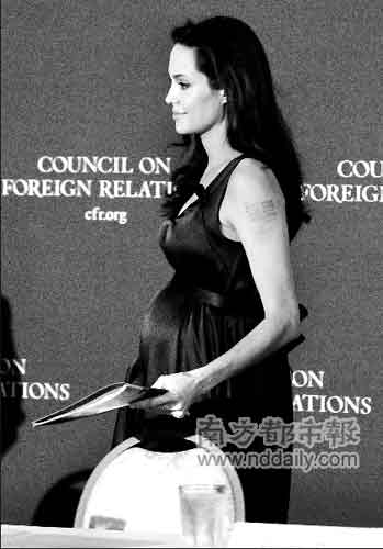 圖文:茱莉現(xiàn)身研討會(huì)孕味十足 雙胞胎傳言仍是謎