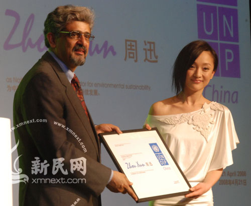 周迅成聯(lián)合國親善大使 呼吁環(huán)保稱不再泡澡(圖)