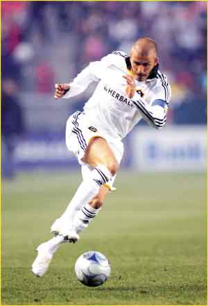 上周周末,洛杉磯銀河隊主場5:2大勝了美國芝華士隊,身為貝克漢姆的好朋友,湯姆·克魯斯帶著他15歲的女兒伊莎貝拉和13歲的兒子科納到體育場,為小貝所在的銀河隊加油助威,看臺上靚佬湯看得眉飛色舞,球場上小貝踢得英勇異常。