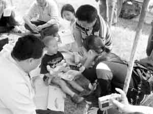 18日蔣勤勤隨全國婦聯(lián)“母愛在行動”特別行動小組抵達(dá)四川重災(zāi)區(qū)綿竹,把從北京帶來的價值10萬元的奶粉親自送到了災(zāi)區(qū)母親和孩子們手上,在臨時搭建的簡易帳篷里,蔣勤勤跟地震中失去雙親的孩子們玩耍、聊天,她說,孩子們要比她想象中的堅強(qiáng),希望能有更多的人關(guān)心這些受災(zāi)母親和兒童。