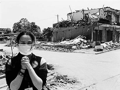 蔣勤勤為災(zāi)區(qū)祈禱。
