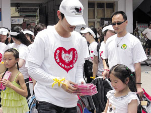 5月16日,在“5·12地震”發(fā)生的第四天,黃曉明帶著醫(yī)療和救援志愿隊趕到受災(zāi)最嚴(yán)重的遵道鎮(zhèn)、漢旺鎮(zhèn)和死傷人數(shù)最為慘重的東方汽輪廠等地,以一名普通志愿者的身份默默幫忙。昨天,在兒童節(jié)這一天,黃曉明又親自率領(lǐng)自己的愛心基金會成員們,二度進(jìn)入重災(zāi)區(qū)綿陽安縣的數(shù)所小學(xué),給孩子們帶去急缺的生活學(xué)習(xí)用品。本報記者昨天也全程陪同,見證了這位將慈善視之“習(xí)慣”的明星的真性情一面。