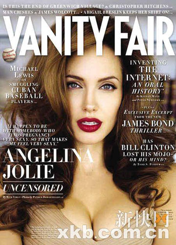 近日,快要臨盆的安吉麗娜·茱莉登上新一期《名利場(chǎng)》封面。這位孕有雙胞胎的準(zhǔn)媽媽紅唇嬌艷,一頭芭芭麗娜的蓬松棕發(fā),頗具簡(jiǎn)·芳達(dá)當(dāng)年的風(fēng)韻,為沉悶已久的《名利場(chǎng)》封面抹上一筆亮色。