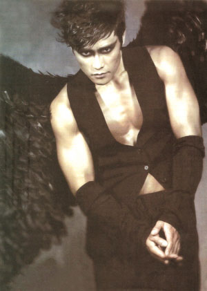 韓國天王李秉憲繼在《三個家伙》中出演了人生中第一個反派角色之后,如今第二次挑戰(zhàn)反派,扮起了向惡魔出賣靈魂的浮士德博士。其實這是他最近為流行雜志《Vogue》拍攝的畫報造型,畫報中的他,黑色的雙眸凹陷,眼神殘酷,緊閉的雙唇以及結實的肌肉展示了一個驚悚的惡魔形象。