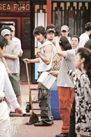 據(jù)香港《明報》報道,由于韓劇《伊甸之東》劇組要保持劇集內(nèi)容的神秘,故記者采訪時要保持遠(yuǎn)距離。不過現(xiàn)場得見,宋承憲的“掃地”裝扮也有型過人,白色背心與軍褲,展示健碩身形。而跟他有對手戲的Zoie也被其電眼電暈,不敢與他對望。