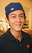 陳冠希(Edison)出席美國加州比華利山(beverly hills)時(shí)裝店舉行的燒烤派對,戴上印有“好正”中文字樣帽子。