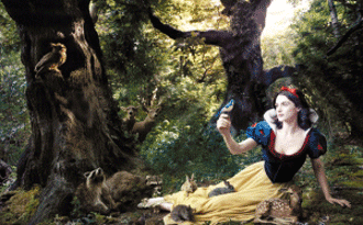 影星斯嘉麗·約翰遜成為灰姑娘,臺(tái)階上還有她遺落的水晶鞋。英俊的貝克漢姆成為睡美人身旁的菲利普王子。黑人女歌星碧昂斯化身《愛(ài)麗絲漫游仙境》的女主角。