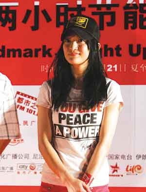 周迅宣傳亞洲熄燈兩小時節(jié)能活動。