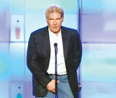 哈里森·福特抓胯下領(lǐng)獎(jiǎng) 不雅動(dòng)作引哄堂大笑