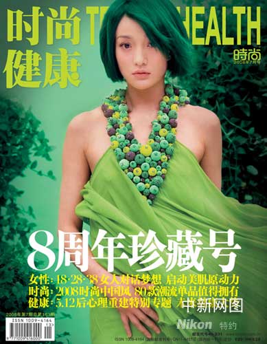 周迅日前為《時尚健康》8周年珍藏版拍攝封面。