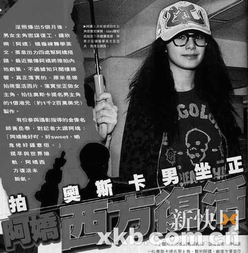 艷照爆出5個(gè)月后,照中主角密謀復(fù)工。鐘欣桐(阿嬌)積極練舞學(xué)英文,英皇出力四處幫阿嬌搭路,最近雖傳阿嬌將接拍內(nèi)地劇集,不過(guò)據(jù)知只聞樓梯響,真正落實(shí)的,原來(lái)是接拍好萊塢西片,阿嬌落實(shí)坐正做女主角,聯(lián)同奧斯卡提名男主角,投入1億港元制作,提早與世界影壇接軌。有份參與攝影指導(dǎo)的著名人士攝影師黃岳泰對(duì)記者大贊阿嬌:“阿嬌幾好,好sweet,西方人好喜歡她。”