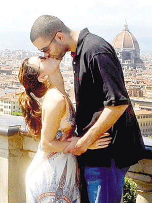 伊娃·朗格麗亞和丈夫托尼·帕克是公認的文體結(jié)盟模范夫妻,日前他們來到意大利佛羅倫薩。兩人手牽手在街道中閑逛,參觀博物館,在一座古堡前,嬌小的伊娃還踮起腳尖,深情親吻高大的丈夫。