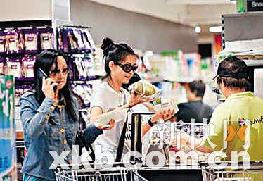 邱淑貞先挑選了兩個(gè)木瓜及奇異果,然后又買了幾包煲湯的湯料及調(diào)味料等。選購(gòu)過(guò)程中,因?yàn)榘l(fā)現(xiàn)被媒體跟拍,邱淑貞立刻戴上墨鏡繼續(xù)購(gòu)物。隨后,邱淑貞又給女兒挑了幾盒餅干、棉花糖和面包。15分鐘后,選購(gòu)?fù)戤叺那袷缲懽叩绞浙y處結(jié)賬,共付款638元。雖然有保姆車接送,但邱淑貞仍然選擇了超市的免費(fèi)送貨服務(wù),填好地址后,只拿著木瓜和奇異果離開,由司機(jī)送回家照顧女兒。看來(lái),當(dāng)上豪門少奶奶的邱淑貞仍然有一雙精明的眼睛,堅(jiān)持勤儉持家。
