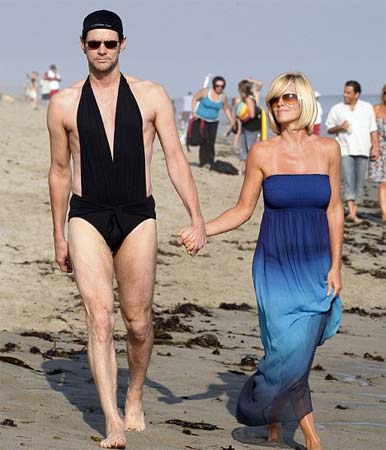 據(jù)臺(tái)灣“聯(lián)合報(bào)”報(bào)道,趁著假日,金·凱瑞和女友珍妮·麥卡錫手牽手在馬里布海灘享受日光浴。曾是“花花公子”模特兒的珍妮·麥卡錫一襲V字型泳衣,吸引不少人的目光。兩人隨即消失一陣,沒多久,金·凱瑞和珍妮·麥卡錫又出現(xiàn)在沙灘上,珍妮穿著再平常不過的露肩洋裝,但金·凱瑞身上竟然是珍妮剛才穿過的黑色V字型泳衣,引來一陣騷動(dòng)與爆笑。