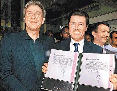 尼斯市長(右)與茱莉的醫(yī)生賽斯曼,公開龍鳳寶寶的出生證明。