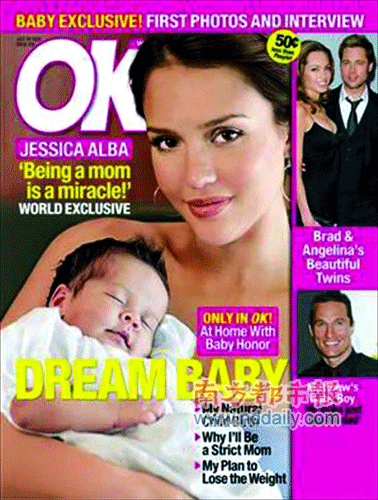 6月7日誕下女兒奧內(nèi)·瑪麗·沃倫(HonorMarieWarren)的杰西卡·阿爾巴(JessicaAlba),抑制不了150萬美元的“誘惑”,和女兒亮相本周《OK!》雜志封面,同時大談懷孕生產(chǎn)趣事,并自爆懷孕期間完全沒有“性致”。