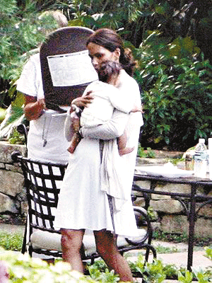 今年3月16日產(chǎn)下女兒的奧斯卡影后哈里·貝瑞始終小心呵護(hù)著寶貝免遭狗仔隊侵?jǐn)_,同時她也堅決反對將照片高價出售給雜志,所以,影迷公眾至今都未能看到她女兒Nahla的真容。然而就在上周四,狗仔隊終于在洛杉磯拍到了哈里·貝瑞抱著女兒外出的畫面。