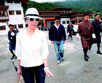 中新網(wǎng)7月25日電 梁朝偉(偉仔)和劉嘉玲昨天一早搭私人飛機(jī)飛離不丹,這是他們婚后首度公開露面,上午11時(shí)半即飛抵印度新德里。一對(duì)新人心情靚到極點(diǎn),即使媒體沖入不丹機(jī)場(chǎng)的VIP室拍照也未遭驅(qū)趕,同行的林青霞被問到是不是要當(dāng)“電燈泡”?她笑而不答。