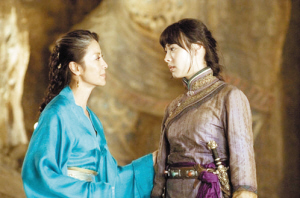 梁洛施在片中和楊紫瓊說標準普通話和盧克·福德則說地道英文并大方“獻吻”。