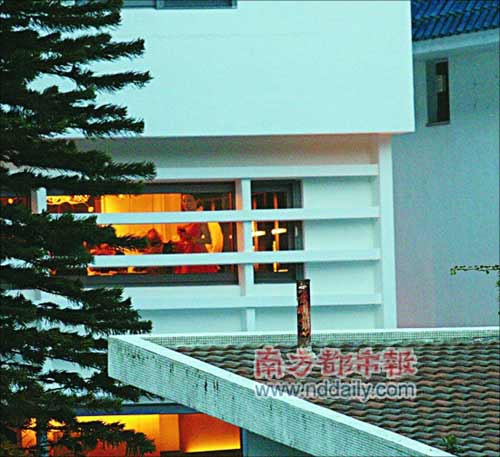 偉仔與嘉玲8月9日在家中舉行新婚派對,嘉玲將頭發(fā)盤起,穿上桃紅色大露背低胸晚裝倍感迷人。當日看到很多賓客盛裝赴會,據(jù)悉有張學(xué)友夫婦、劉德華(華仔)及其他圈內(nèi)外好友。華仔8日晚才結(jié)束北京奧運會開幕式的表演,隨即趕回港出席派對。8月9日傍晚時分,已見身穿桃紅大露背晚裝的嘉玲在家中招呼賓客,每個人手上都拿著紅酒把酒言歡,不時在屋內(nèi)游走,大家都很享受這種自由派對的無拘無束。只是后來偉仔發(fā)現(xiàn)記者遠距離拍攝屋內(nèi)情況,就走到窗前將窗簾拉上,但無礙他們的興致。他們一直在狂歡,以致守在花園門外的記者也不時聽到他們傳來的笑聲。