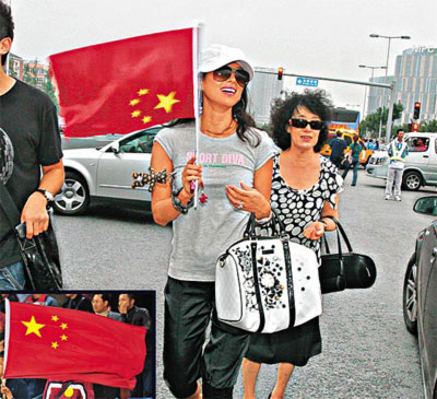 據(jù)香港媒體報道,昨日郭晶晶與吳敏霞成功奪金后,章子怡于下午約4時與母親離開水立方,心情興奮的她不停揮動中國國旗,但細(xì)看之下,她拿得竟是“倒裝”的國旗。想必是看到中國隊(duì)員再奪金,興高采烈地子怡并未留心此烏龍事件。
