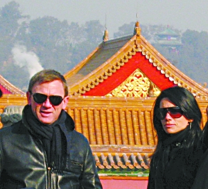 去年,“007”扮演者丹尼爾·克雷格(左)與女友(右)來到北京,一起游覽了各大風景區(qū)。