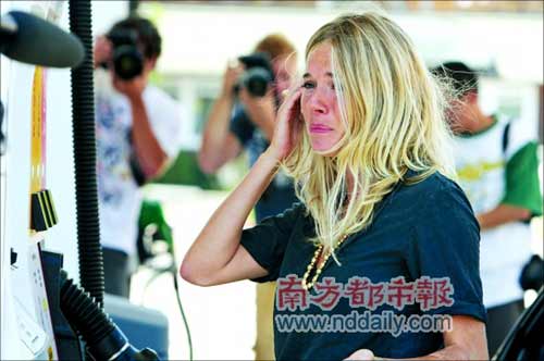 2008年8月11日,美國(guó)女星西耶娜·米勒駕駛她的凌志跑車(chē)現(xiàn)身某加油站。當(dāng)狗仔提到關(guān)于她和巴薩扎·蓋提的緋聞時(shí),西耶娜的眼淚奪眶而出,顯得非常委屈。