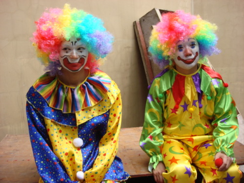 中新網(wǎng)8月14日電 據(jù)香港《太陽(yáng)報(bào)》報(bào)道,張智霖日前在博客上公開(kāi)幾張化上小丑妝的有趣相,第一張相是他戴著爆炸頭假發(fā),忙于白面上加色樣,而第二、三張相則是完成小丑妝,同小丑朋友合照,z中間還有一張是小丑張智霖拿著攝影機(jī)扮導(dǎo)演,可能他覺(jué)得張相太完美,故文字只得寥寥幾句:“我是一個(gè)演員,也是…一個(gè)小丑。”