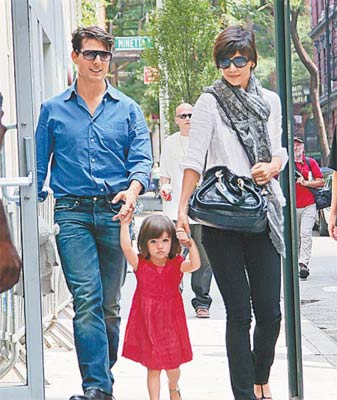 阿湯哥(左起)與女兒舒莉、愛妻凱蒂在紐約散步,看得出來瘦了。