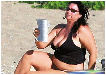 布魯斯南版的“詹姆斯·邦德”向來身邊靚女如云,但現(xiàn)實生活中,這位英國紳士只愛妻子——130公斤的肥婆姬麗·史密斯。54歲的布魯斯南于2001年迎娶了比他小10歲的第二任太太姬麗,但在為丈夫先后生下兩個兒子后,專心相夫教子的她身材走樣兒,到了海濱度假總被媒體驚呼“鯨魚擱淺”,但這全然不會動搖她在布魯斯南心里的地位。上周在hawaii海灘,除了和老婆橫抱在一起旁若無人的熱吻以外,騎在一棵倒下的樹樁上看劇本的布魯斯南,還不時對著妻子做鬼臉只為博芳顏一笑。