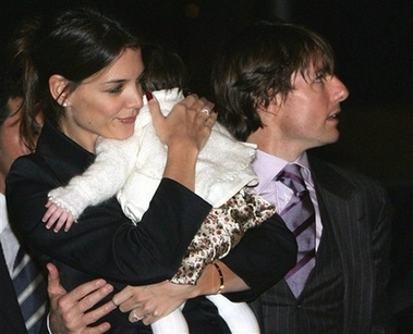 湯姆克魯斯與抱著小女兒蘇莉的愛妻凱蒂荷姆斯。
