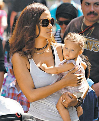 據(jù)臺灣媒體報(bào)道,5個半月大的娜拉有一雙藍(lán)眼睛與一頭卷發(fā),活潑好動,不時被哈莉·貝瑞與外婆逗得咯咯笑,相當(dāng)可愛。哈莉·貝瑞是黑白混血,孩子的爸爸是白人男模蓋柏瑞歐布萊,女兒的膚色比她更白。哈莉·貝瑞產(chǎn)女后堅(jiān)持不出賣女兒照片撈錢,7月曾有記者偷闖她家花園拍到她們母女倆的照片,當(dāng)時寶寶剛好趴在她肩上,看不到臉蛋,哈莉·貝瑞獲悉后火冒三丈,揚(yáng)言要告媒體。