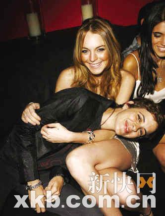 女星林賽·洛翰與同性女友薩曼莎·羅森(Samantha Ronson)現(xiàn)身第60屆艾美獎(jiǎng)慶功派對(duì)。薩曼莎親昵地倒在林賽的腿上,就像一個(gè)撒嬌的小孩。