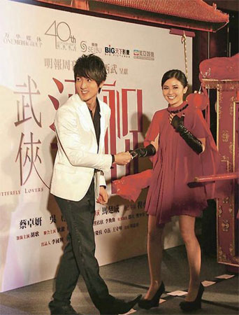 中新網(wǎng)10月7日電 馬楚成新片《劍蝶》前晚在香港舉行首映禮,主演阿Sa身穿鮮紅色連身裙,儼如新娘子般坐花轎出場(chǎng),由手持長(zhǎng)劍的吳尊“踢轎門”,引得現(xiàn)場(chǎng)粉絲尖叫連連。吳尊坦言被阿Sa的“新娘”裝迷倒,大贊雍容華貴,女人味十足。