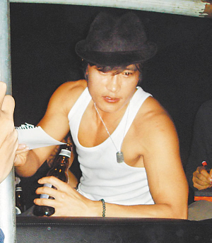 李秉憲在凌晨派對上玩到盡興時脫去上衣,只剩白色小背心。