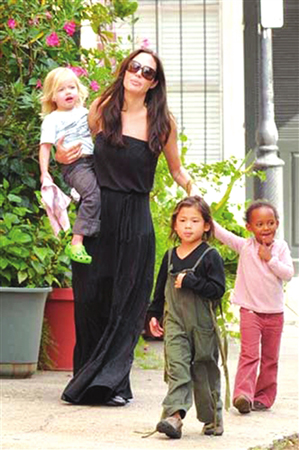 周一,安吉麗娜·朱莉領(lǐng)著她的三個(gè)孩子5歲的帕克斯、3歲的扎哈拉和2歲的希洛出現(xiàn)在新奧爾良的一個(gè)法語區(qū)。朱莉抱著希洛,領(lǐng)著另兩個(gè)孩子,這個(gè)膚色不盡相同的一家人看起來其樂融融。欣聞