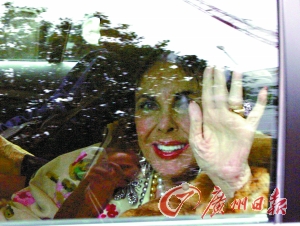 坐上車后的泰勒隔著玻璃窗向攝影師招手,她珠光寶氣,依舊美艷迷人,但那已經(jīng)皺紋橫生的手卻毫不留情地提醒著人們這位一代美女已經(jīng)76歲的事實(shí)。