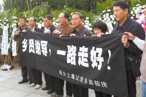 “鄉(xiāng)賢謝導(dǎo),一路走好!”昨日,為送謝晉最后一程,謝晉家鄉(xiāng)——上虞的父老鄉(xiāng)親們也專程派代表來到上海!爸x晉是我們的驕傲,他一生都在用電影為底層人民說話,F(xiàn)在他走了,但我們一定會把他的電影夢想繼續(xù)下去。”這位謝晉的老鄉(xiāng)說。