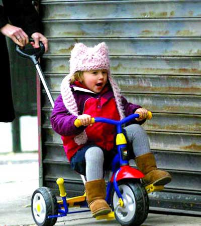 已故男星希斯萊杰的女兒蒂達(dá)羅斯萊杰近日現(xiàn)身街頭。小蒂達(dá)騎著一輛兒童三輪車,紅衣、粉帽、棉靴很是可愛。也許是自己的車技并不高,也許是玩得很開心,小蒂達(dá)滿臉微笑,真不知,希斯萊杰若在天堂見到此情此景,又是如何一番感受。