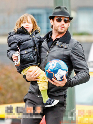 圖文:最性感男星休·杰克曼街頭大曬父愛(ài)