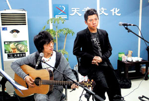 昨天,羽·泉在北京一家錄影棚中現(xiàn)身,二人正在為這周六舉行的“黃金10年”演唱會進行排練,排練間隙二人告訴記者:“只憑票房這場演唱會鐵定賠錢。”
