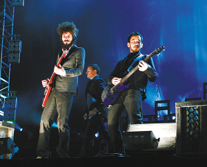《One step closer》的吉他前奏在能容納2萬多人的虹口足球場內(nèi)響起時,幾乎所有的歌迷都站了起來,高喊著“Linkin Park”,盡管氣溫很低,但場內(nèi)氣氛卻已開始沸騰。昨晚,堪稱饒舌金屬樂界最耀眼的明星樂隊林肯公園的上海站演唱會在虹口足球場舉行,不僅場內(nèi)爆滿,許多買不到票的鐵桿歌迷甚至站在場外聽完全場;而此次上海演唱會也吸引了許多國內(nèi)歌手前來觀看,記者在場內(nèi)碰到的就有羽·泉、李泉、左小祖咒等。